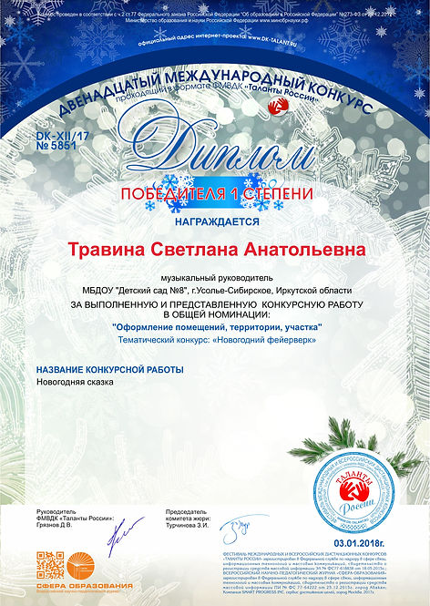 Благодарность выражаем родителям МБДОУ «Детский сад №8» принявших участие в оформлении зала. Добрые дела не остаются незамеченными. Благодаря вам, мы приняли участие в Международном конкурсе «Таланты России» и получили ДИПЛОМ 1 СТЕПЕНИ.